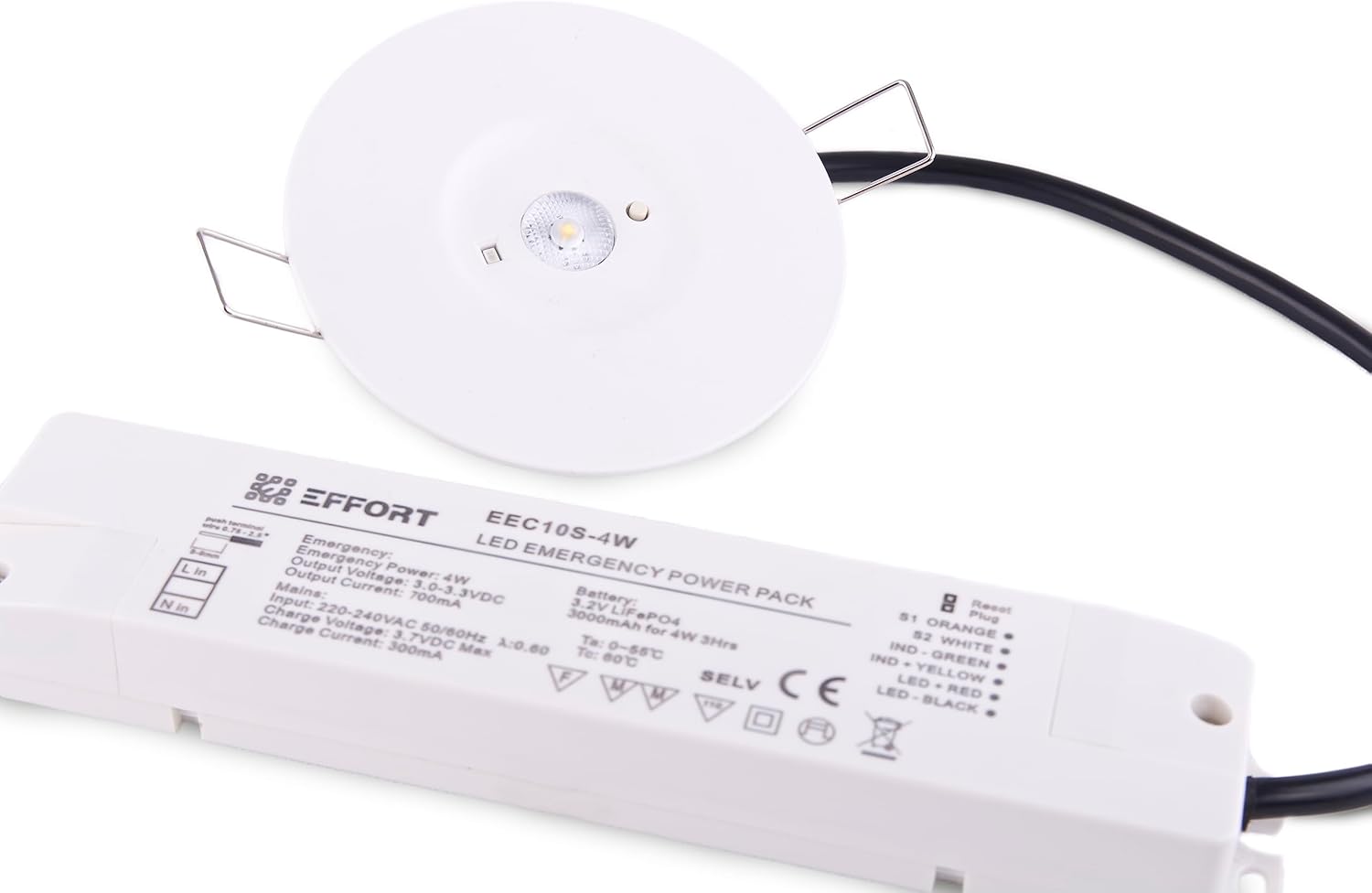 This 3W emergency LED spotlight is flush mounting to suit quality installations requiring minimal, inobtrusive fittings. Supplied with a 240v-6.4v transformer that incorporates the battery and LED driver, the downlight casts a comfortable but clean colour temperature that gives good visibility when operating in emergency mode.