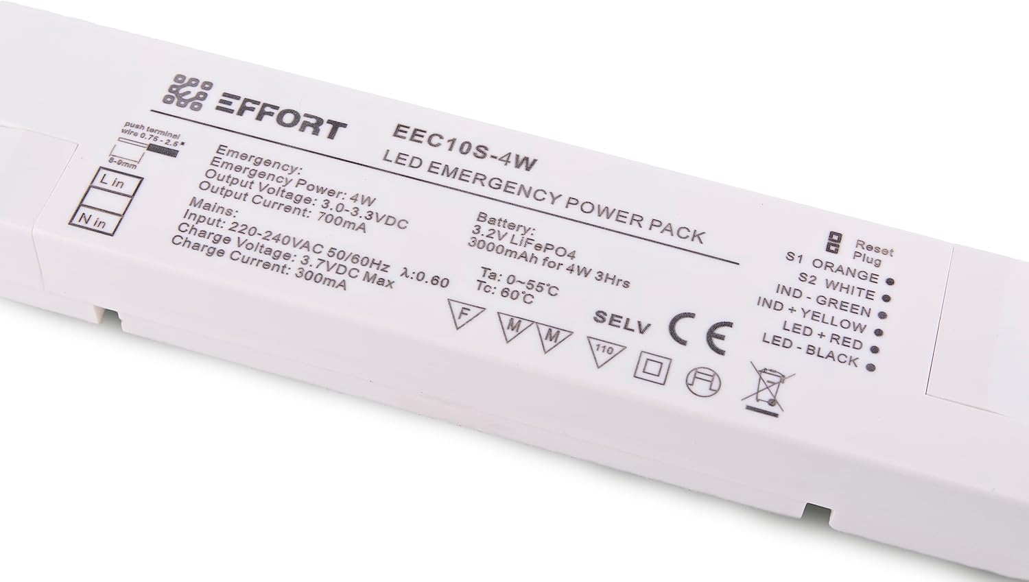 • Emergency lighting output: 300 lumens
