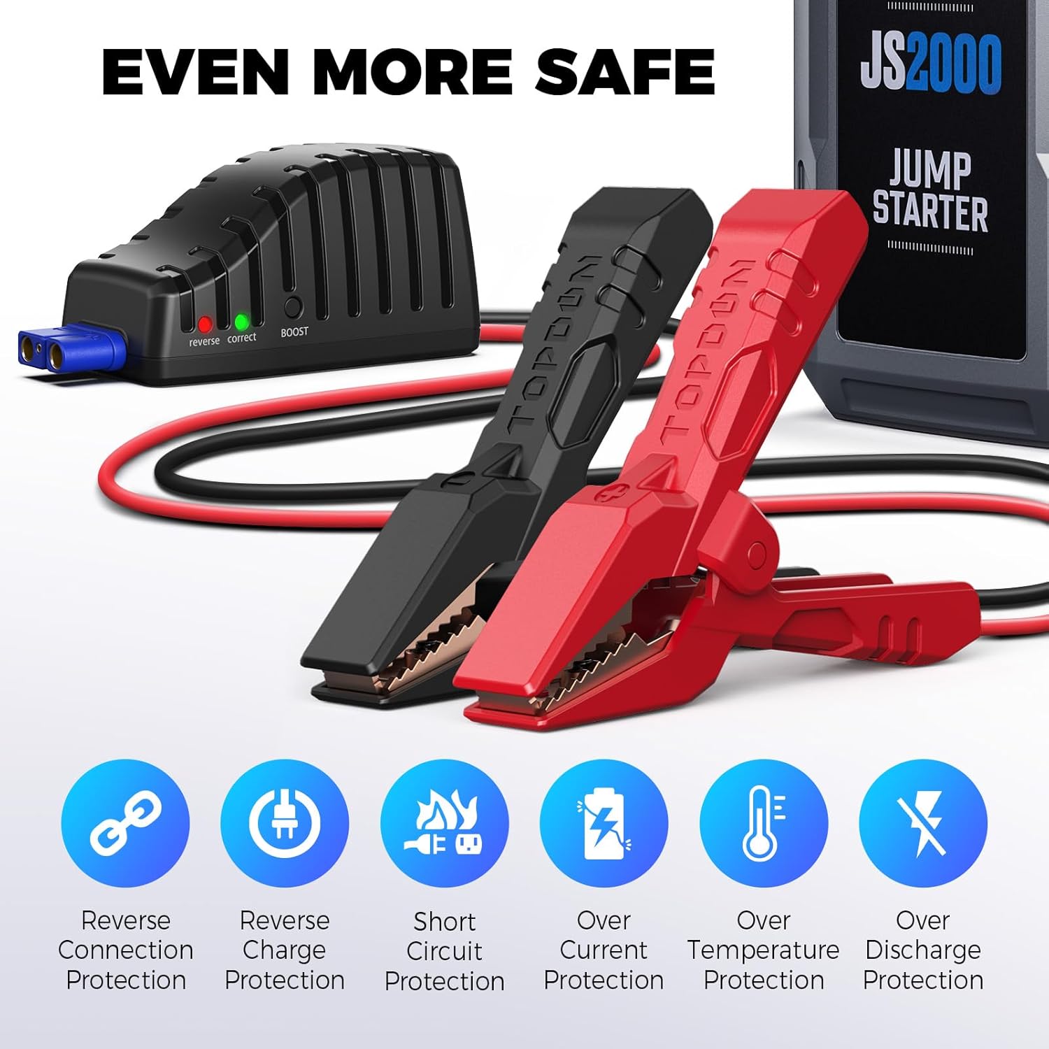 • All-Round And Durable Protection ➤With an carrying case which made of high quality hard EVA, protecting the JS2000 with a light-weight, crush-resistant, anti-shock case. High quality zipper design convenience for easy in opening and closing. By purchasing this too, you get the jump starter ; heavy-duty clamps; USB-C cable; user manual; EVA carrying case; dedicated 24/7 customer care service; 30 day return & replacement policy; 1 year quality assurance; and free lifetime technical assistance.