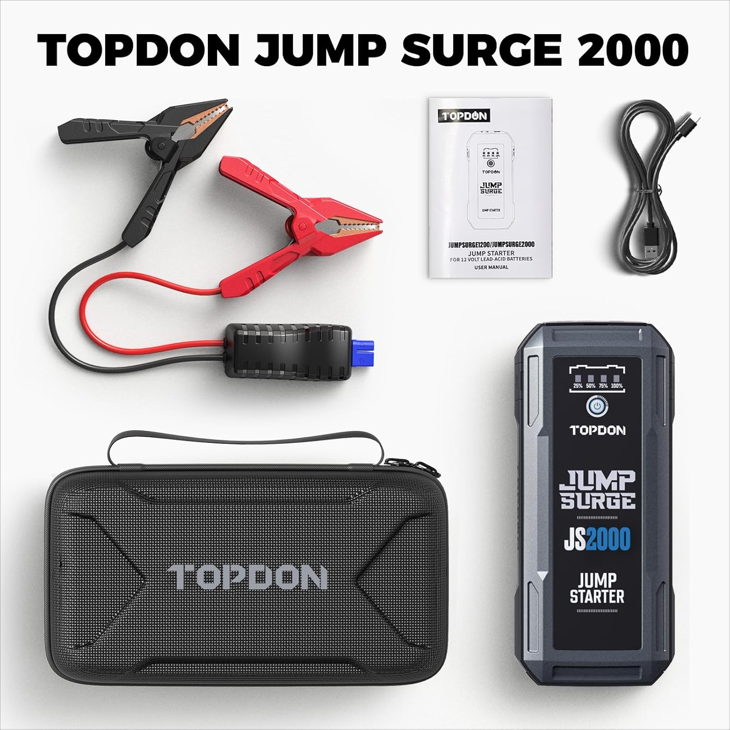 TOPDON JS2000 2000A Car Jump Starter with Battery Charger & Case